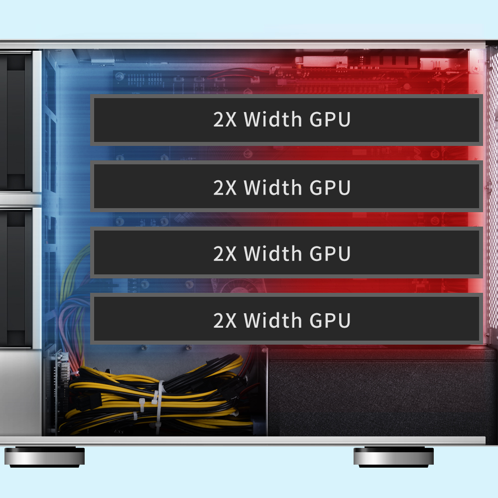 Netstor 장치 내 각 그래픽 카드에 PCIe 4.0 ×16 신호가 제공되어 최고 대역폭을 제공하는 최대 4개의 GPU 카드를 지원합니다.